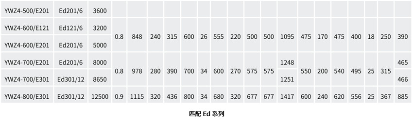 注:YWZ4系列的制動(dòng)器匹配Ed推動(dòng)器,替代原YWZ4B系列;