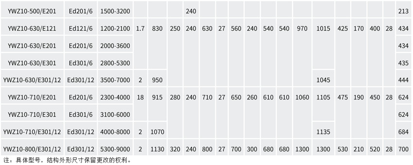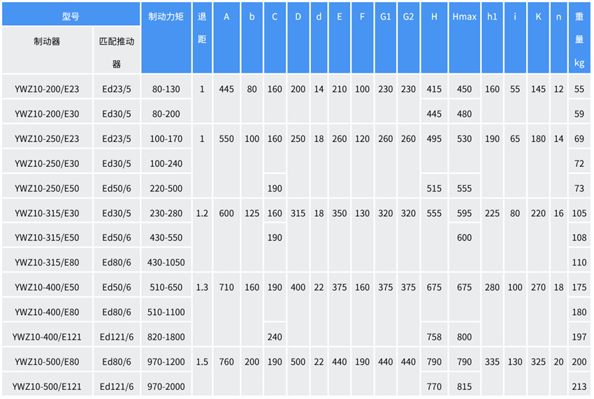 YWZ10系列電力液壓鼓式制動(dòng)器的安裝尺寸和制動(dòng)力矩參數(shù)符合GB6333-86標(biāo)準(zhǔn),其技術(shù)要求符合JB/T6406-2006標(biāo)準(zhǔn)。